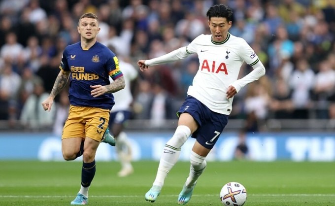 Son Heung-min đua tốc độ với đồng đội cũ Kierran Trippier trong trận đấu ở sân Tottenham ngày 23/10. Ảnh: Sky