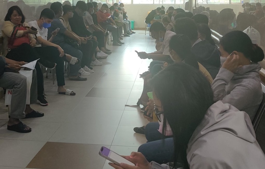 Bệnh nhân xếp hàng ở hành lang tại Bệnh viện Đại học Y Dược TP HCM chờ đến lượt khám bệnh. Ảnh: Mỹ Ý