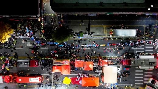 Lính Mỹ sống sót sau thảm kịch Itaewon: ‘Thi thể ở khắp nơi’. Ba binh sĩ Mỹ đang có nhiệm vụ tại Hàn Quốc nói với AFP rằng họ bị cuốn vào đám đông dồn xuống “bẫy tử thần” - con hẻm hẹp và dốc - khi tham gia lễ hội Halloween vào tối 29/10. Theo Korea Herald, con hẻm dài 45 m, rộng 4 m, dốc xuống về phía đường chính và nhà ga Itaewon. Ba binh sĩ Mỹ mô tả suốt nhiều giờ, họ hỗ trợ kéo người mắc kẹt ra khỏi đám đông tại con hẻm ở Itaewon. Tuy nhiên, họ nói không có nhiều người còn sống sót sau khi được giải cứu.