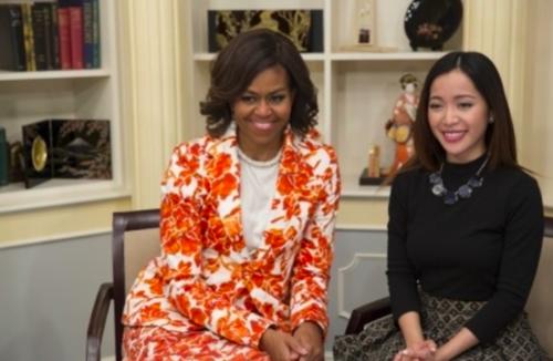 Michelle Phan gặp Đệ nhất phu nhân Mỹ Michelle Obama. Cô tham gia vào dự án sáng kiến dành cho trẻ em gái ở các nước đang phát triển mà bà Obama khởi xướng. Các con của Tổng thống Mỹ cũng là người thường xuyên theo dơi những video của Michelle. Ảnh: White House