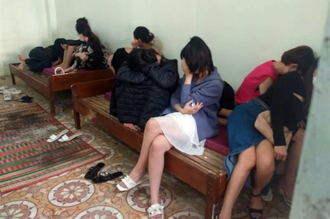 Nhiều cô gái tham gia tiệc ma tuý ở quán karaoke lúc nửa đêm. Ảnh: Công an cung cấp