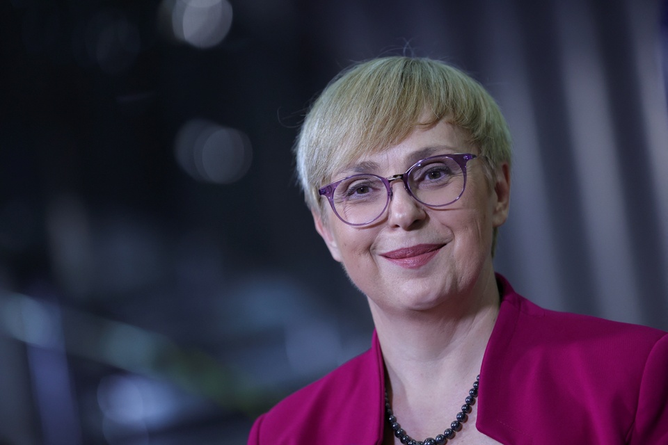 Bà Natasa Pirc Musar tại cuộc họp báo sau khi giành chiến thắng trong vòng bầu cử thứ hai ở Ljubljana, Slovenia hôm 13/11. Ảnh: Reuters.