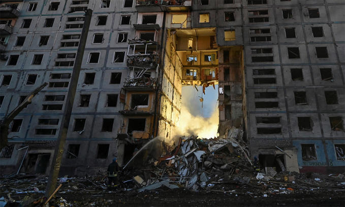 Một chung cư tại thành phố Zaporizhzhia, Ukraine hư hại sau khi Nga tập kích tên lửa ngày 9/10. Ảnh: Reuters.
