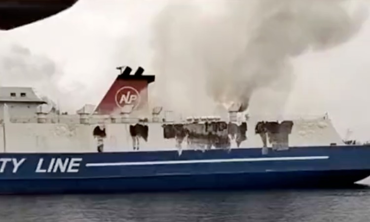 Phà chở khách Mutiara Timur I bốc cháy ngoài khơi Bali ngày 16/11. Ảnh: Twitter/@gchahal.
