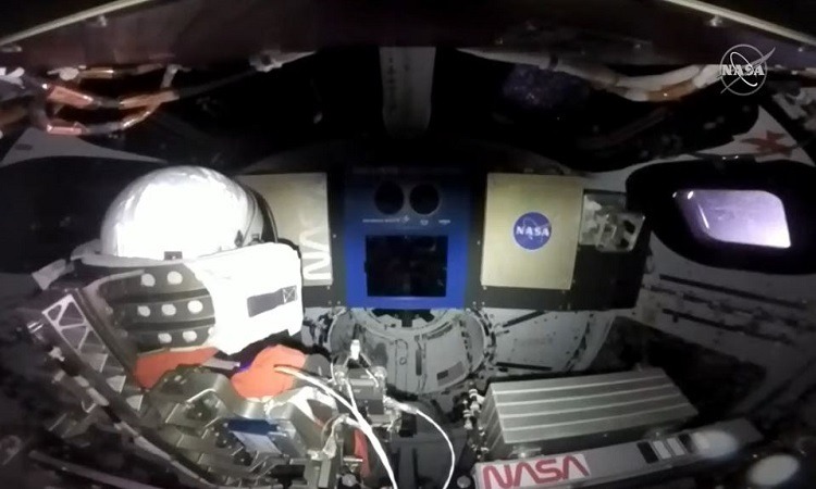 Người nộm Moonikin Campos ngồi ở ghế chỉ huy trên tàu Orion. Ảnh: NASA