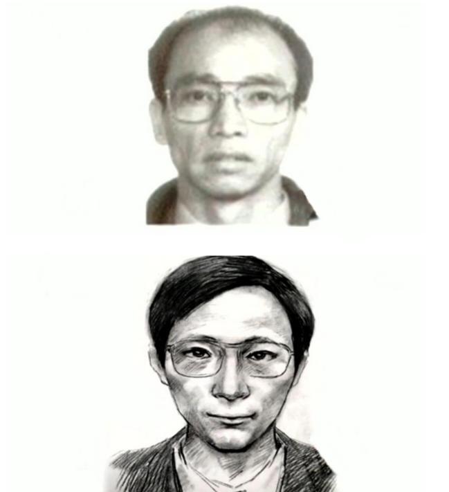 Hình trên là ảnh của Dương Kiến Quốc, hình dưới là chân dung phác thảo của cảnh sát năm 2002. Ảnh: SMG