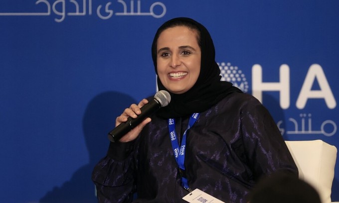 Sheikha Al Mayassa tham gia Diễn đàn Doha lần thứ 20 với chủ đề "Chuyển đổi v́ Kỷ nguyên mới" tại Doha ngày 27/3. Ảnh: AFP