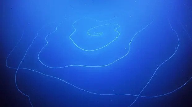 Các nhà khoa học đã tìm thấy một sinh vật sợi dài, dẻo, lơ lửng, tạo thành hình xoắn ốc khổng lồ, ở độ sâu 600 m, trong một hẻm núi dưới nước ở bờ biển Tây Australia vào năm 2020.