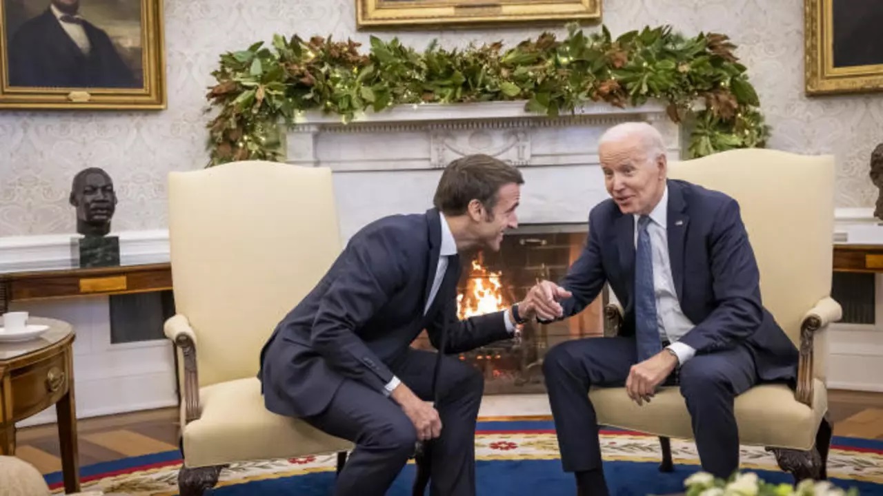 Nguyên thủ Mỹ Joe Biden tiếp đồng nhiệm Pháp Emmanuel Macron tại Phòng Bầu Dục, Nhà Trắng, Washington, ngày 01/12/2022. © JEAN-CLAUDE COUTAUSSE POUR LE MONDE