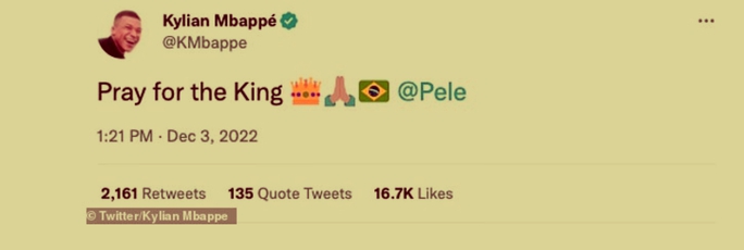 Câu lạc bộ Santos nơi Pele từng thi đấu, cựu danh thủ Rivaldo và tiền đạo người Pháp Kylian Mbappe là ba trong số đông đảo cá nhân và tập thể trên khắp thế giới đã cùng nguyện cầu, chúc sức khỏe và mong Pele vượt qua cơn bạo bệnh.