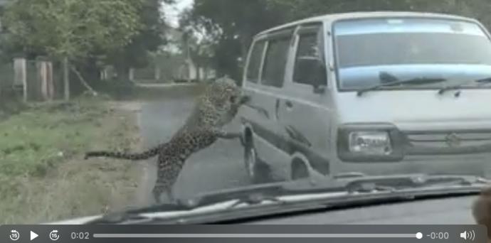 Con báo tấn công một ô tô có đầy hành khách bên trong.