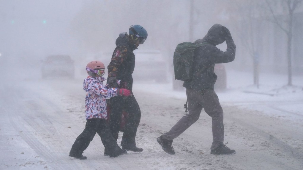 Một gia đình băng qua đại lộ Elmwood ở thành phố Buffalo ngày 23/12. Ảnh: AP