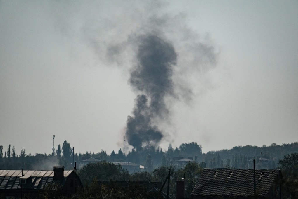 Cột khói bốc lên từ khu vực phía nam Bakhmut, miền đông Ukraine, hôm 7/10. Ảnh: AFP.