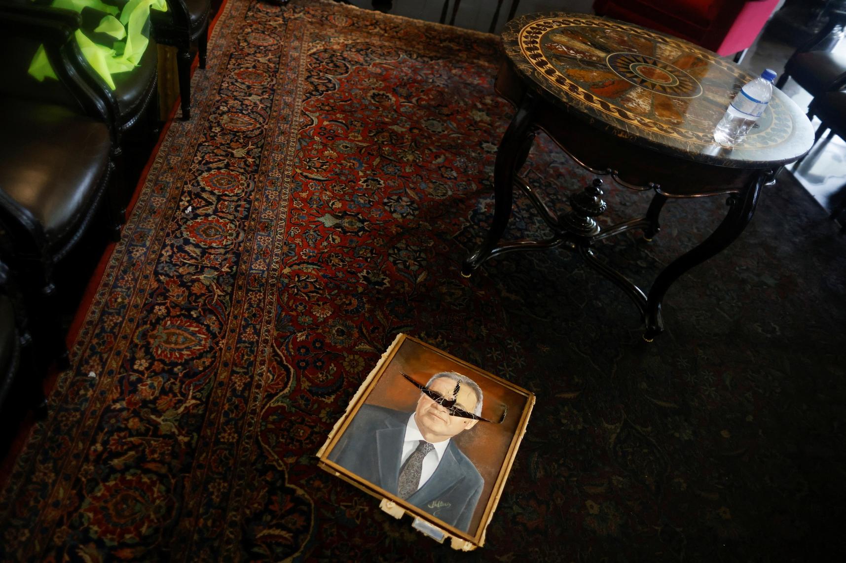 Những đường vẽ nguệch ngoạc bằng bút dạ được nhìn thấy dọc theo tường hành lang của văn phòng Cục An ninh Thể chế, cơ quan chịu trách nhiệm đảm bảo an toàn cho tổng thống. Ghế ngồi bị ném ra khỏi cửa sổ vỡ và những kẻ bạo loạn đã cố đốt một chiếc ghế sofa.