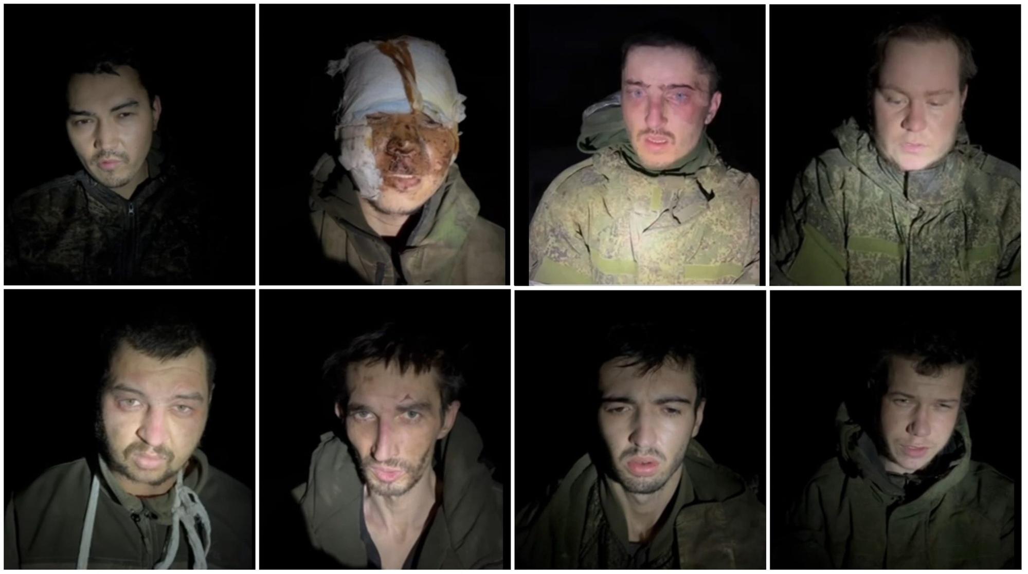 Nhóm lính thủy đánh bộ thuộc Lữ đoàn Thủy quân lục chiến Cận vệ 155 của Liên bang Nga bị Ukraine bắt làm tù binh tháng 2/2023. Ảnh cắt từ đoạn phim do nhà báo Volodymyr Zolkin đăng tải. Nguồn Military
