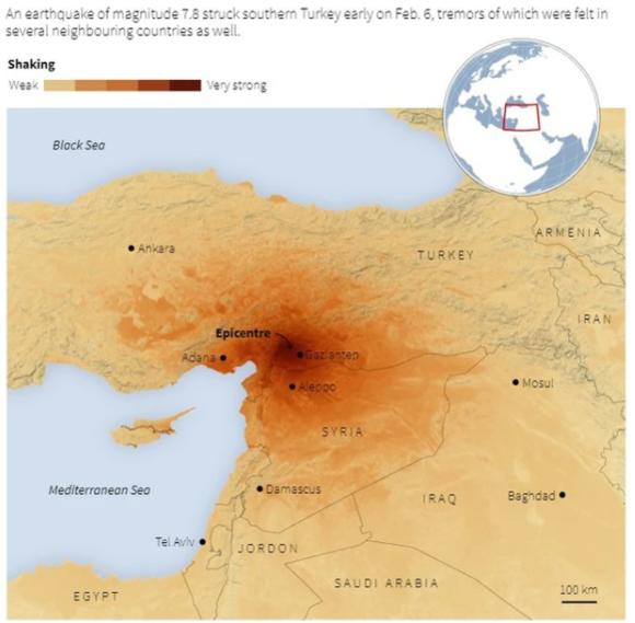 Trận động đất sáng sớm 6/2 có tâm chấn nằm ở tỉnh Kahramanmaras của Thổ Nhĩ Kỳ, và gây ảnh hưởng nặng nề ở các tỉnh Gaziantep, Sanliurfa, Diyarbakir, Adana, Adiyaman, Malatya, Osmaniye, Hatay và Kilis.