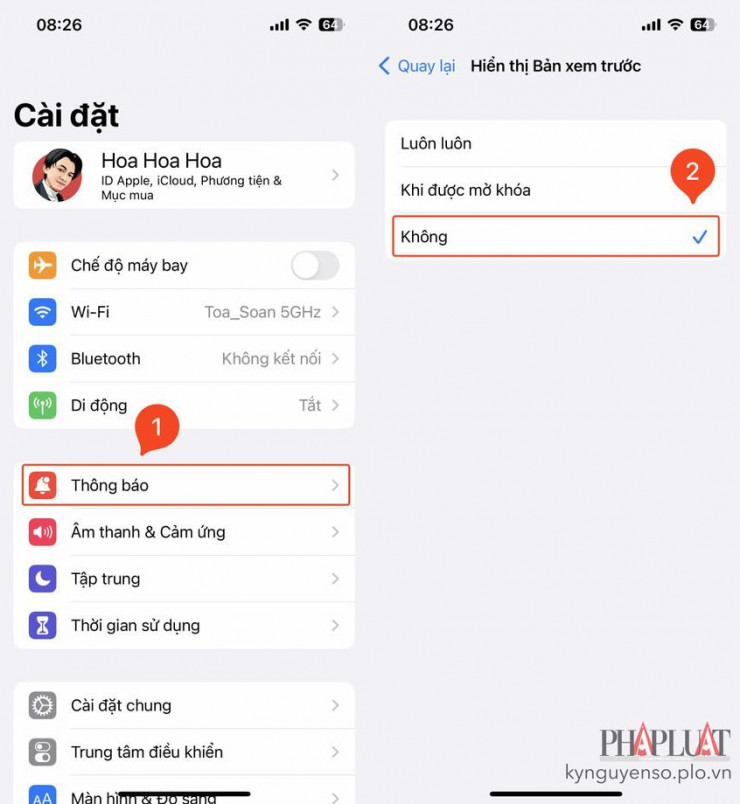 Cách tắt hiển thị nội dung xem trước trên màn hình khóa. Ảnh: MINH HOÀNG