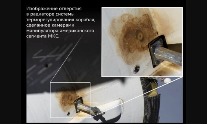 Những bức ảnh được Roscosmos công bố trên tài khoản mạng Telegram của cơ quan này. Loạt ảnh cho thấy bằng chứng về hư hỏng bên ngoài. Trước đó, Roscosmos kết luận rò rỉ xảy ra vào hôm 14/12/2022 do va chạm với vi thiên thạch gây ra. "Đây là ảnh lỗ thủng ở bộ tản nhiệt thuộc hệ thống điều hòa nhiệt trên tàu vũ trụ, chụp bằng camera trên cánh tay robot ở module của Mỹ trên trạm ISS", Roscosmos cho biết.
