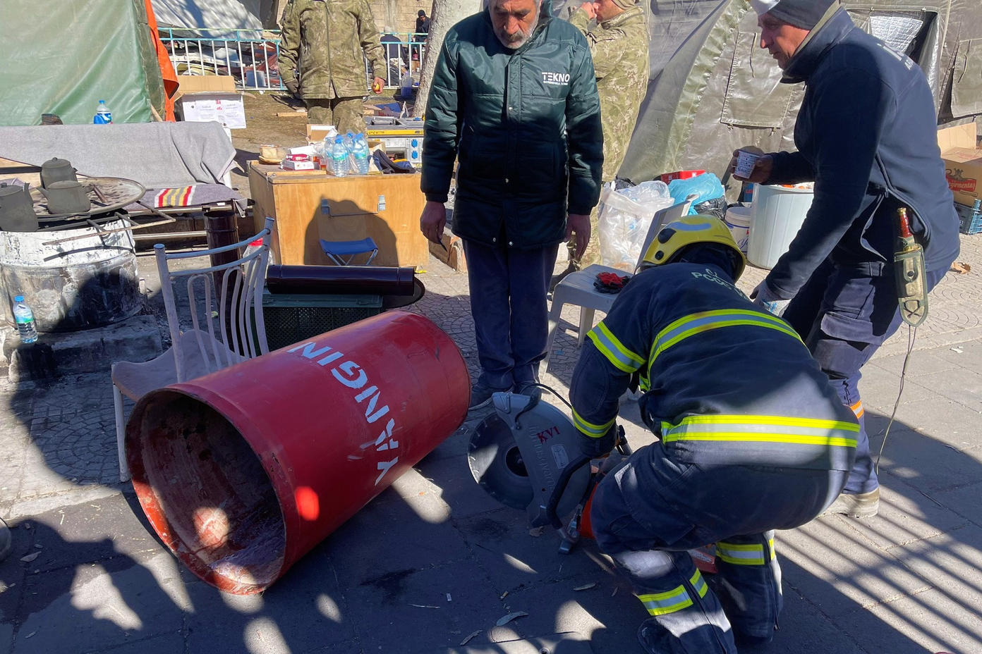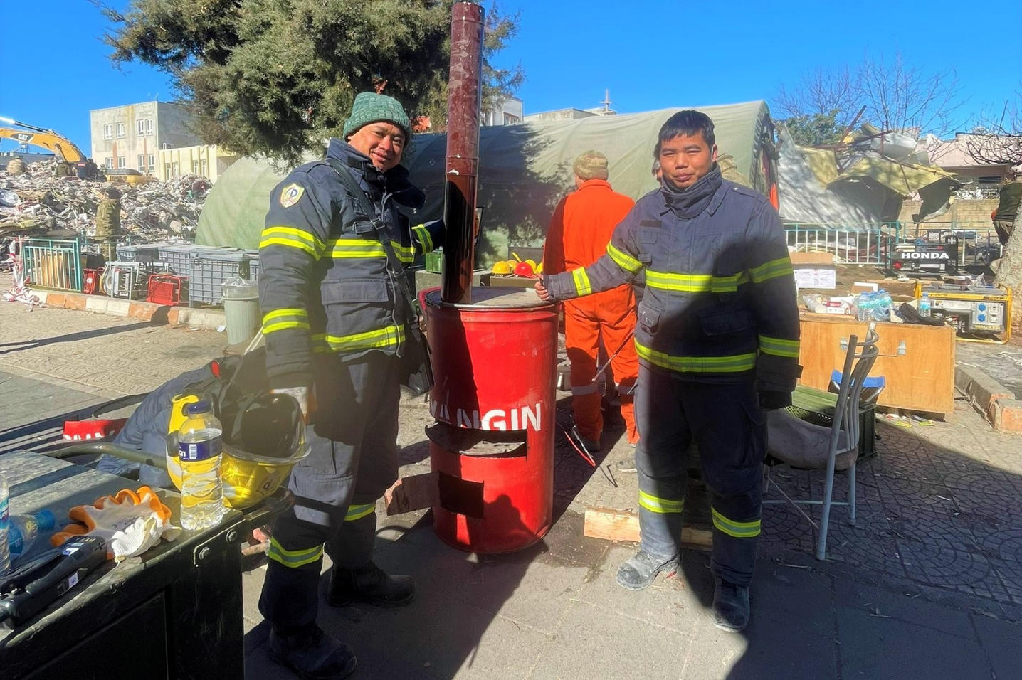 Để chống chọi với giá rét, nhiệt độ dao động từ -6 đến -10 độ C, lực lượng cứu nạn của quân đội Thổ Nhĩ Kỳ đã nhờ Đoàn cứu nạn quốc tế của Bộ Công an Việt Nam chế tạo bếp lửa dã chiến.