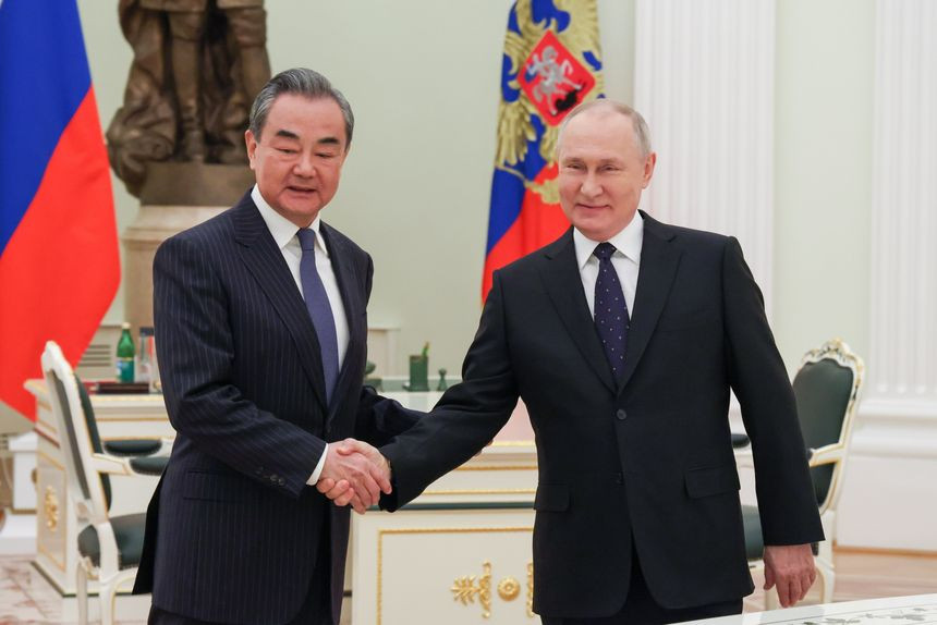 Nhà ngoại giao hàng đầu Trung Quốc Vương Nghị gặp Tổng thống Nga Vladimir Putin tại Moscow. Ảnh: Zuma Press