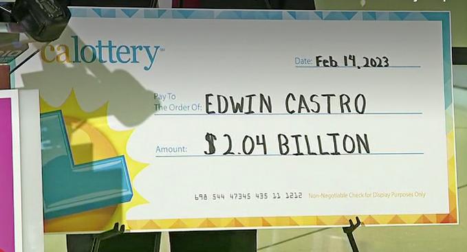 Trước đó, người chiến thắng duy nhất của giải độc đắc Powerball trị giá 2,04 tỷ USD vào tháng 11/2022 đã được xướng tên vào ngày 14/2 tại một cuộc họp báo ở California, Mỹ. Ông Edwin Castro đã chọn nhận luôn một lần tiền thưởng trị giá 997,6 triệu USD, thay vì phương án nhận khoản tiền lớn hơn trong 29 năm, mỗi năm thanh toán một phần.