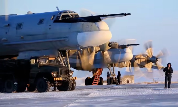 Các máy bay ném bom chiến lược Tu-95MC trong video do Bộ Quốc phòng Nga công bố hôm 15/2. Ảnh: Reuters.