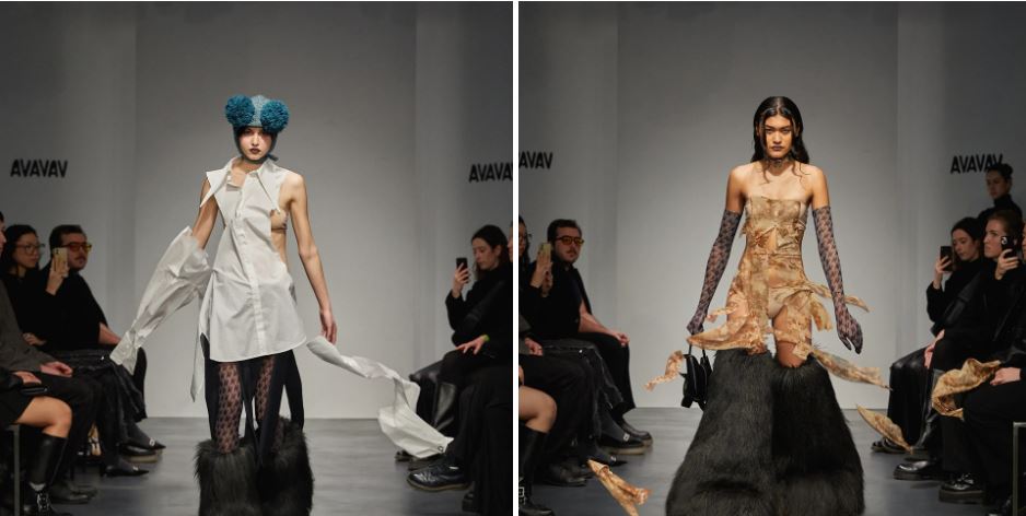 Người mẫu bị xé quần áo trên sàn diễn. Tại Show diễn của Avavav, thuộc khuôn khổ tuần lễ thời trang mùa thu đông 2023, người xem bất ngờ ý tưởng độc đáo.