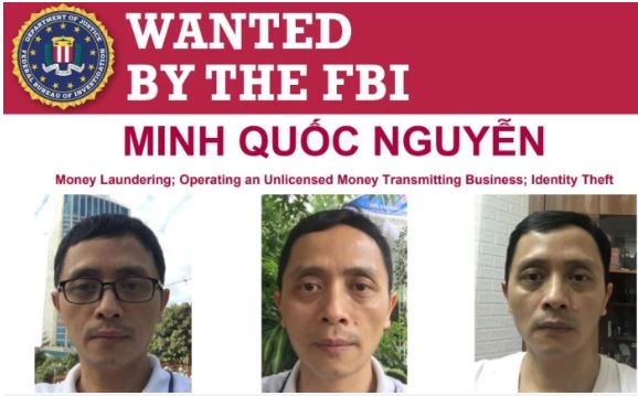 FBI truy nã một người Việt với cáo buộc rửa tiền số trị giá 3 tỷ USD. Ngày 15/3, Cục điều tra liên bang Mỹ (FBI) phát lệnh truy nã một người quốc tịch Việt Nam tên Minh Quốc Nguyễn với cáo buộc tham gia rửa tiền số trị giá 3 tỷ USD.