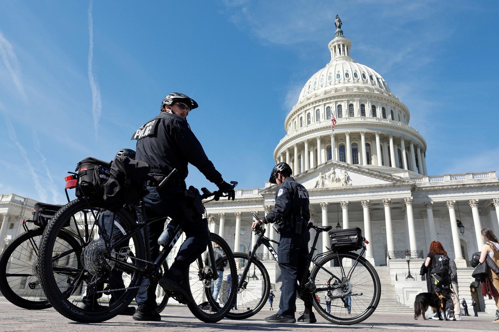 Lực lượng an ninh tuần tra tại Điện Capitol ở Washington, D.C, hôm 21/3. Ảnh: Reuters.