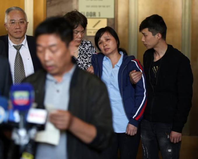 Mẹ Dĩnh (áo sơ mi xanh) thất vọng trước bản án tù chung thân của kẻ sát hại con gái sau phiên tòa ngày 18/7/2019. Ảnh: Chicago Tribune