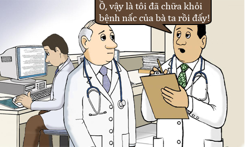 - Ồ, vậy là tôi đã chữa khỏi bệnh nấc của bà ta rồi đấy!