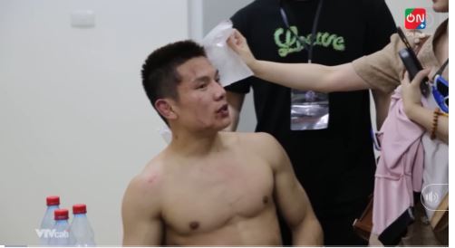 Cận cảnh khuôn mặt "biến dạng" của Lý Tiểu Long sau khi ăn "combo đấm" từ Trần Quang Lộc. Võ sĩ MMA Lý Tiểu Long, sau khi nhận "combo đấm" từ Trần Quang Lộc và chấp nhận thua cuộc đã được đội nghĩ y tế chăm sóc. Khuôn mặt chi chít các vết thương của anh cho thấy sự khốc liệt của bộ môn MMA...