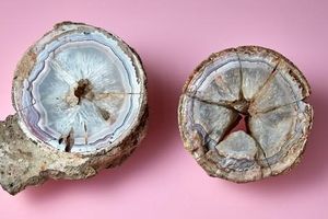 Theo Live Science, viên đá quý kỳ lạ có nguồn gốc từ một đồng bằng núi lửa Ấn Độ. Nó là một viên mã não tròn tuyệt đẹp màu trắng và hồng nhạt, được bao bọc bởi lớp đá thường xù xì hơn.