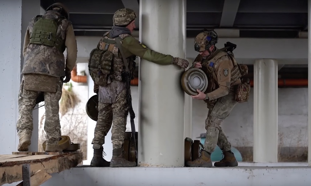 Hình ảnh quân nhân Ukraine gài mìn ở khu vực biên giới phía bắc được công bố ngày 8/4. Ảnh: Bộ Quốc phòng Ukraine
