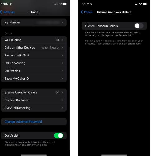 Phương pháp này rất đơn giản nhưng không thuận tiện bằng ứng dụng lọc cuộc gọi. Bật tính năng này trên iPhone sẽ cho phép bạn tắt tiếng các cuộc gọi từ số máy không có trong danh sách liên hệ của bạn, đồng thời chuyển hướng thẳng người gọi tới hộp thư thoại.