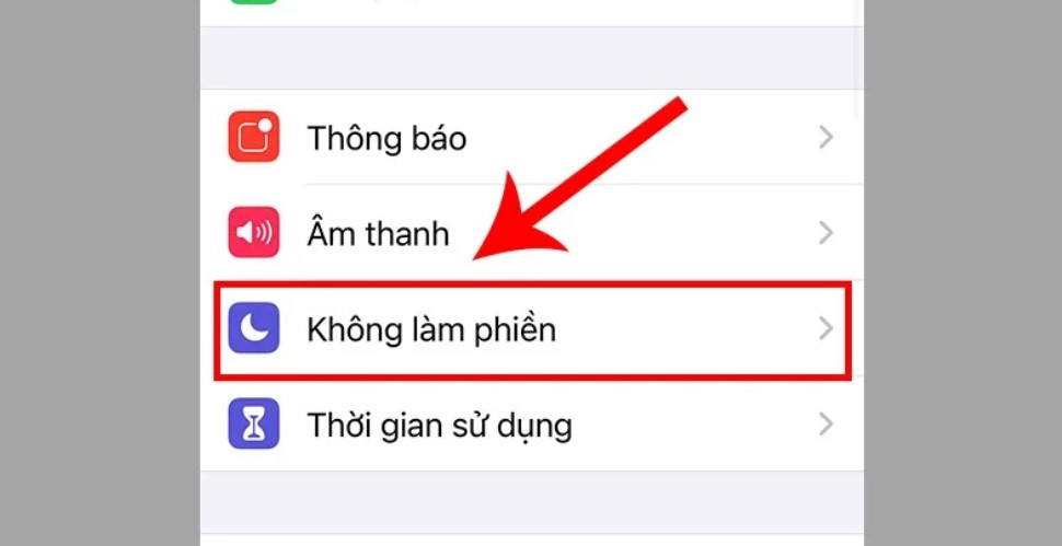 Bước 1: Bạn mở điện thoại lên và truy cập vào mục ứng dụng “Cài đặt” trên màn hình. Sau đó, lướt tìm đến danh mục” Không làm phiền” như hình minh họa bên dưới.