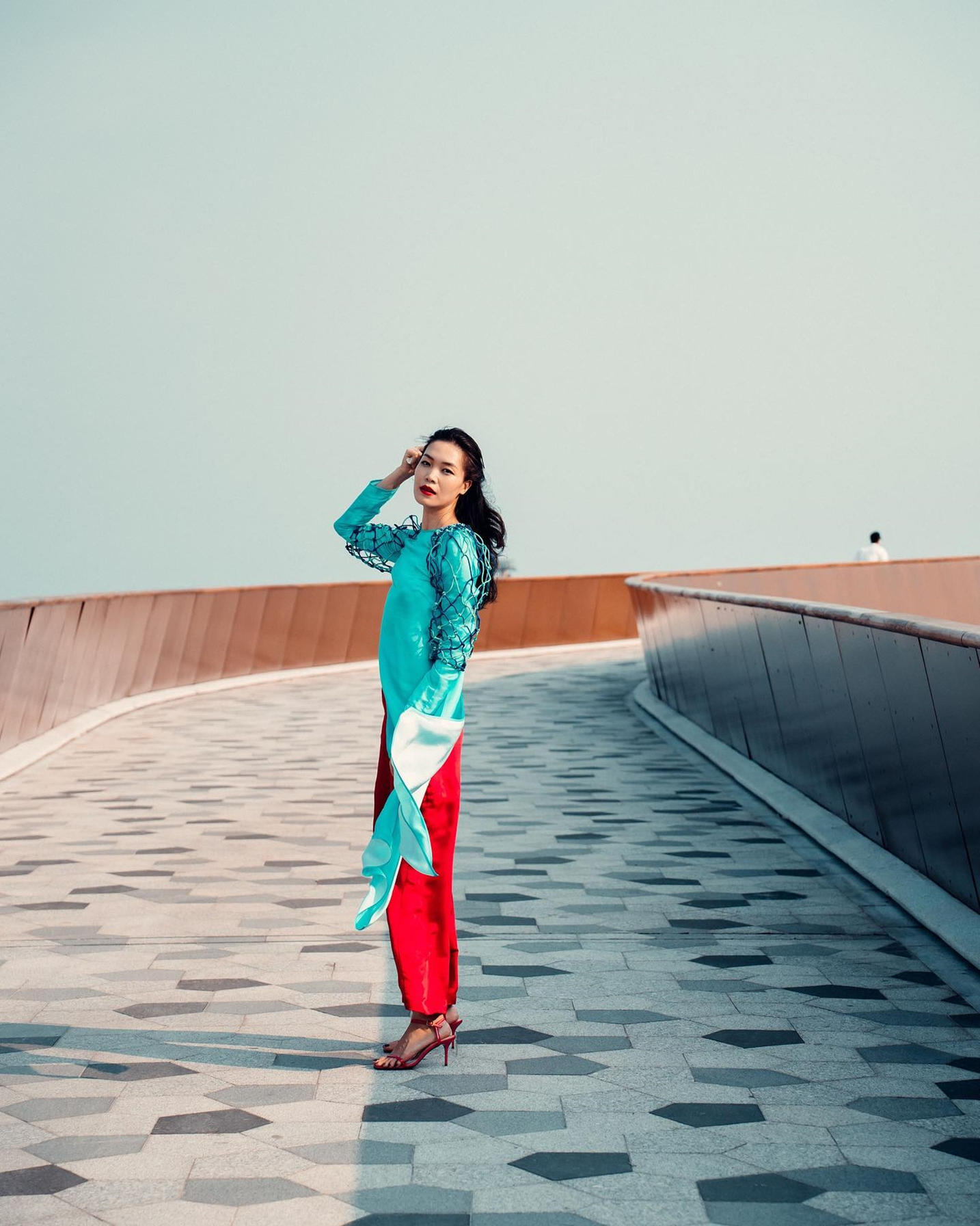 Thiết kế chất liệu lụa mỏng, xẻ cao giúp làm nổi bật vóc dáng mảnh mai của người đẹp đến từ Đà Nẵng.