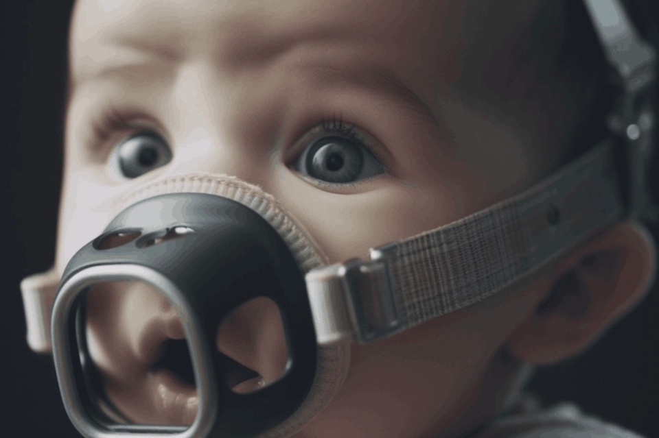 “Chiếc khẩu trang này được thiết kế để che miệng và mũi của đứa trẻ một cách nhẹ nhàng, giúp giảm 87% tiếng khóc lóc”, trích thông tin trên website.