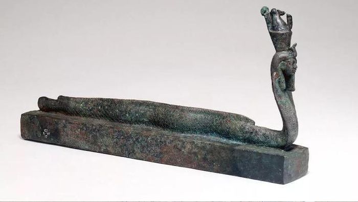 Sinh vật kết hợp giữa lươn, rắn và một vị thần ngự bên trên một chiếc quan tài Ai Cập - Ảnh: BẢO TÀNG ANH