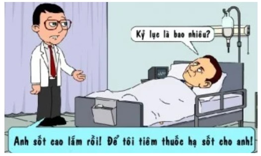 - Khoan đã bác sĩ! - vị quán quân thều thào hỏi - Kỷ lục sốt thế giới bây giờ là bao nhiêu?