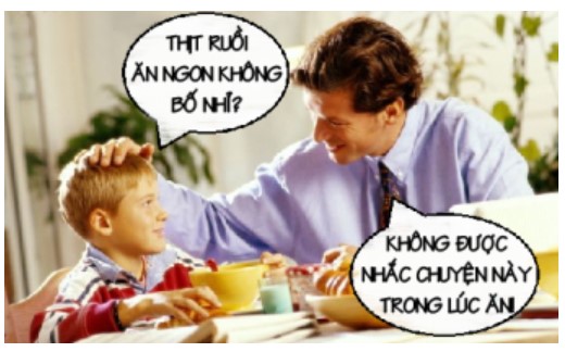Cậu con trai gật gù. Ăn xong, ông bố nghiêm nghị hỏi: