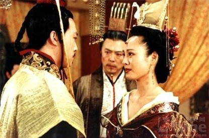 Tần Thủy Hoàng đứng bên cạnh Triệu Cơ và Lã Bất Vi trong phim truyền hình Trung Quốc.