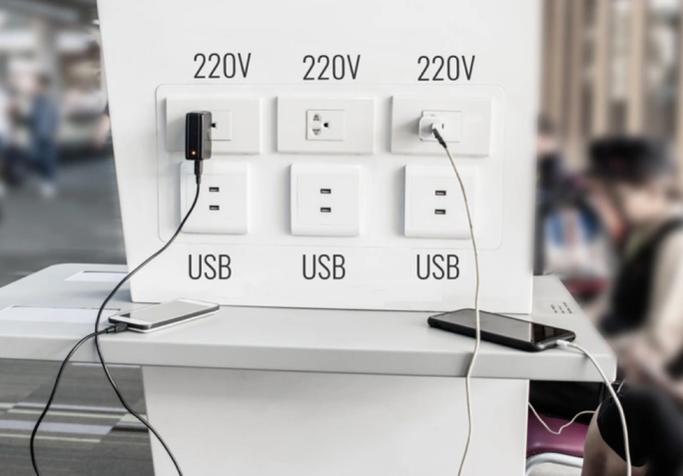 Tại các sân bay, nhà ga, siêu thị … khắp nơi trên thế giới hiện đa phần được trang bị các trạm sạc điện thoại di động - bao gồm củ sạc và hệ thống dây cáp được đặt sẵn trong ổ cắm.
