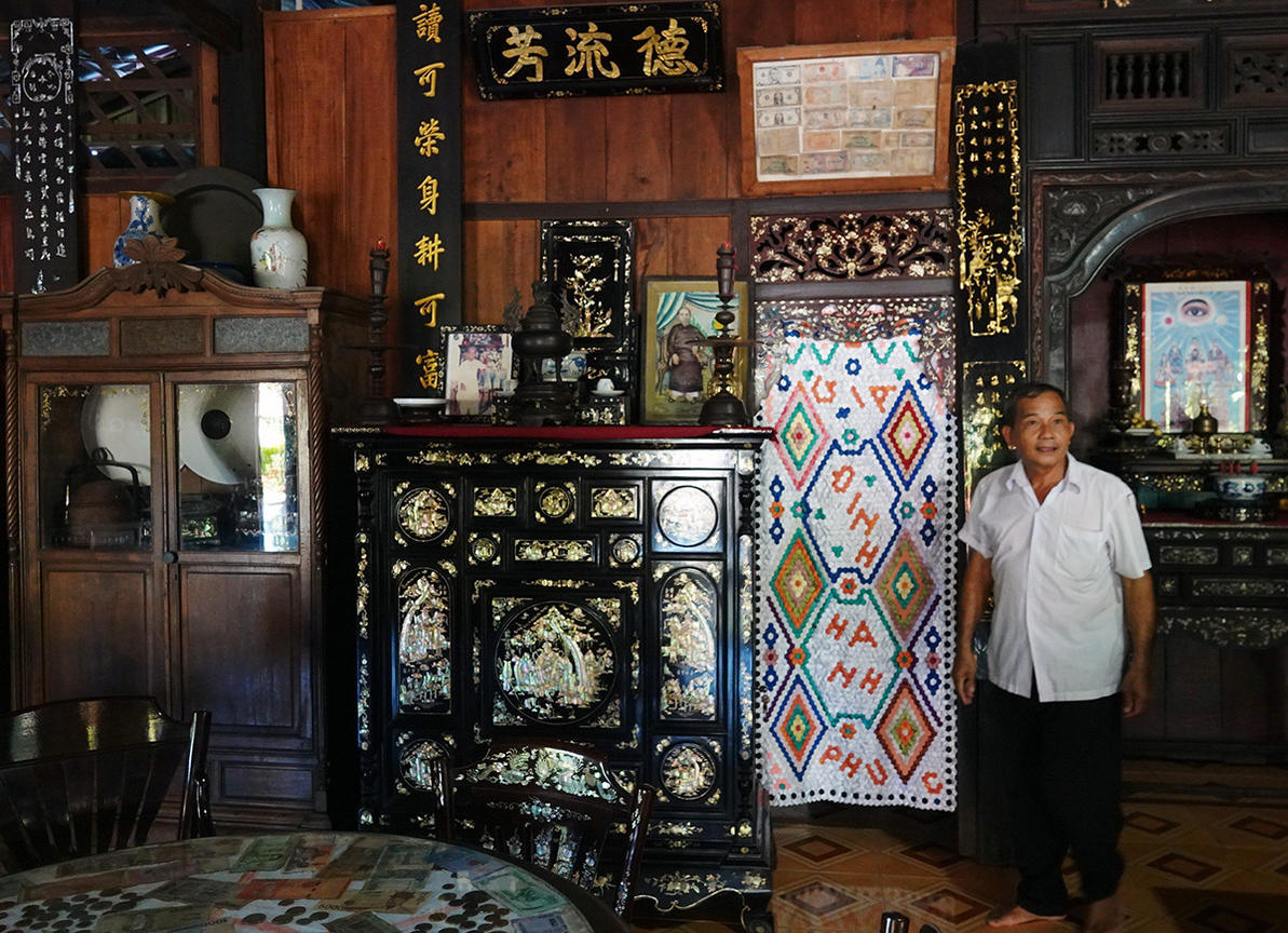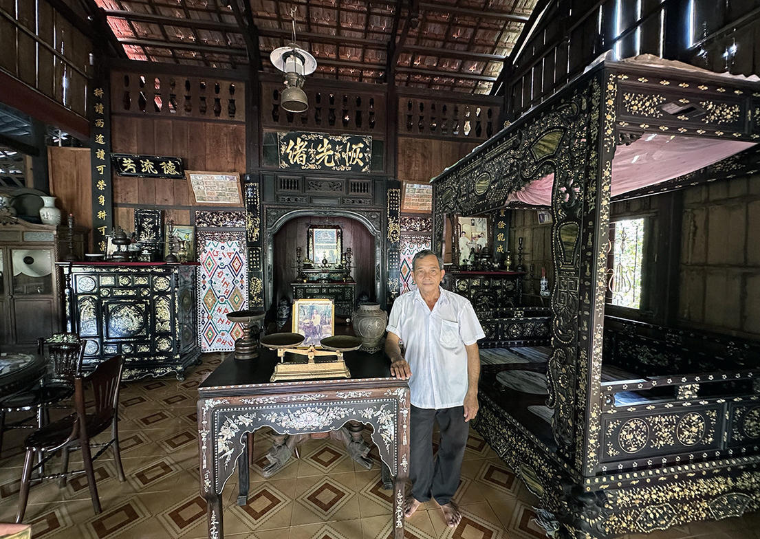 Ông Chẳng có cả trăm món đồ cổ như: men sứ, đèn, đồng tiền, hộp thuốc rê, giường ngủ, bàn, tủ được cẩn xà cừ tinh tế, bắt mắt. Trong nhà ông, gian chính giữa đặt bàn thờ tổ tiên bày trang trọng và nền nã theo lối kiến trúc xưa.