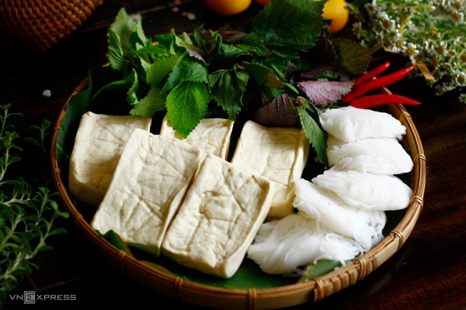 Đậu phụ làng Mơ và bún lá Phú Đô. Ảnh: Bùi Thủy