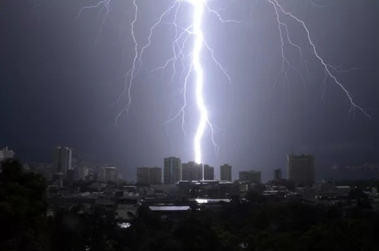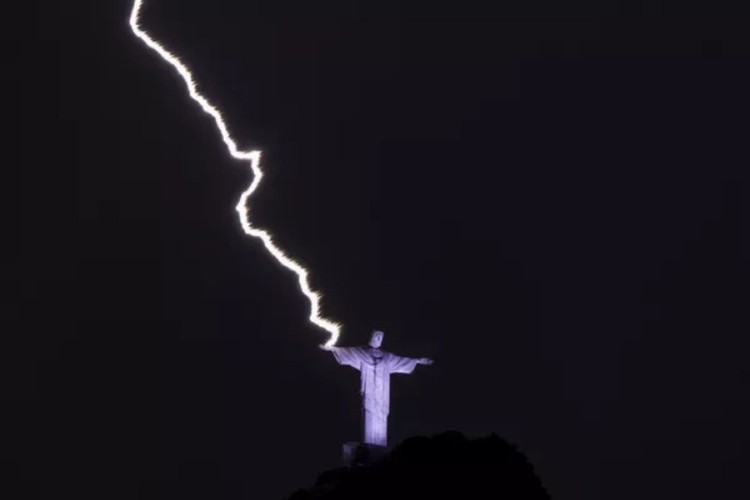 Sét đánh vào cánh tay của tượng Chúa Cứu thế ở Rio de Janeiro.