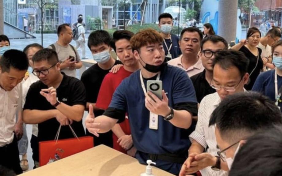 Một nhân viên giới thiệu mẫu điện thoại Huawei Mate 60 mới cho khách hàng tại cửa hàng Huawei ở Thâm Quyến, tỉnh Quảng Đông, Trung Quốc vào ngày 30/8/2023. Ảnh: Reuters