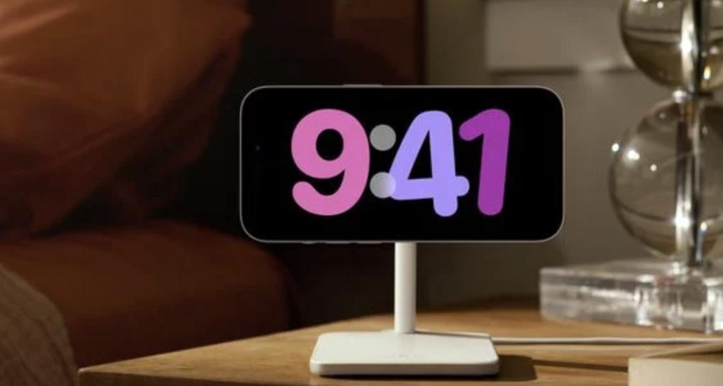 Dựng ngang iPhone trong khi sạc để sử dụng chế độ Chờ (StandBy). Nó sẽ biến iPhone thành màn hình cung cấp những thông tin như đồng hồ, lịch, ảnh, dự báo thời tiết, trình phát nhạc, tiện ích… Ngoài ra, chế độ chờ còn hỗ trợ xem hoạt động trực tiếp trên màn hình (Live Activities) như tỷ số trận đấu, tiến độ giao đồ ăn, Siri, cuộc gọi đến, thông báo.