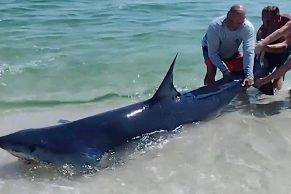 Theo đoạn video được tờ Bưu điện New York công bố gần đây, một nhóm du khách đang đi dạo trên bãi biển Pensacola thuộc bang Florida, Mỹ thì phát hiện một con cá mập mako vây ngắn đang vùng vẫy do mắc cạn. Lập tức, nhiều người đàn ông trong nhóm trên đã tiến đến và cố gắng giải cứu con cá mập.