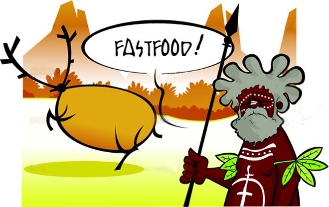 Có một cặp vợ chồng đang sống trong thời kỳ đồ đá. Chồng nằm ngủ dưới bóng râm, người vợ lo lắng bảo: